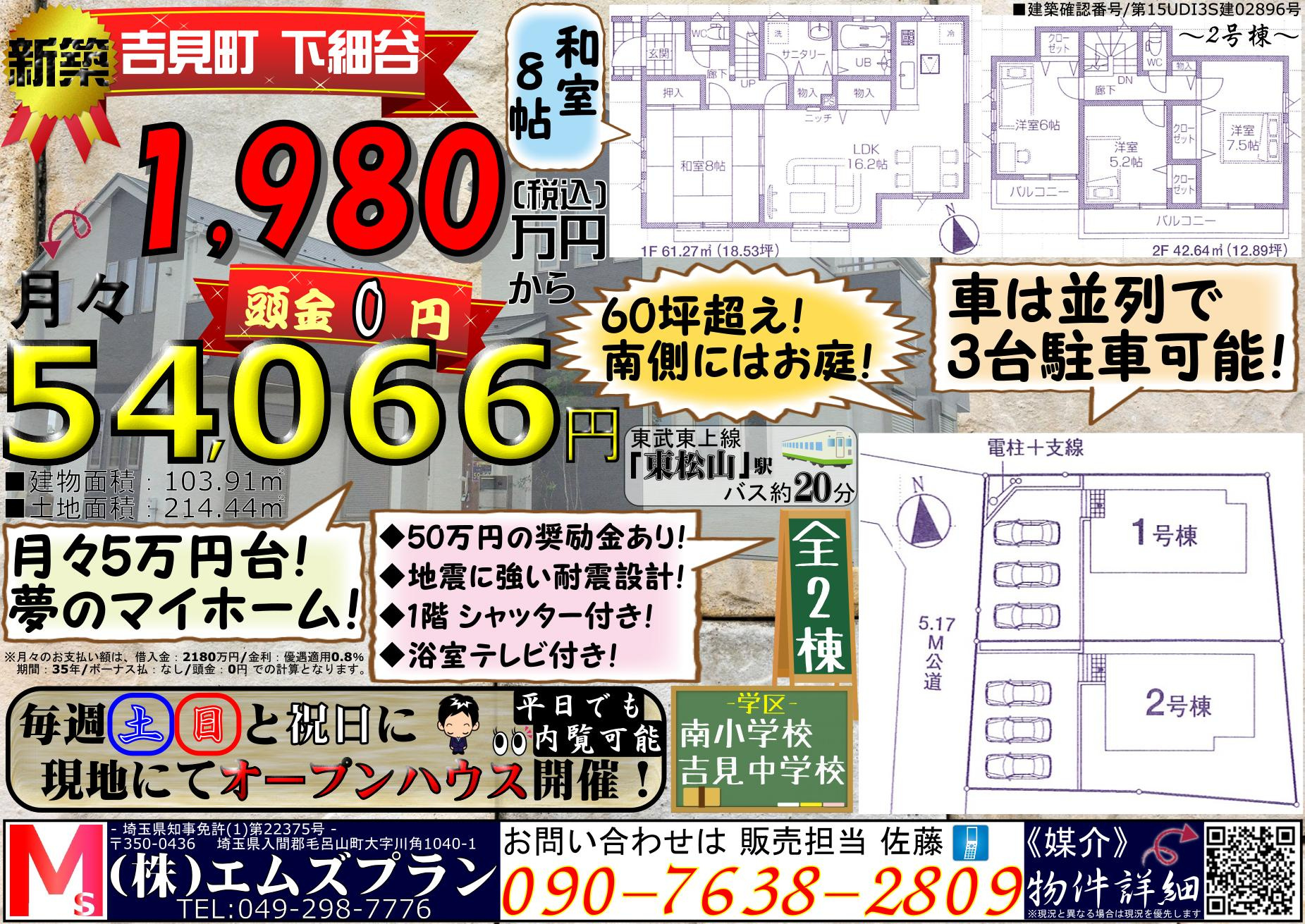 ①埼玉県 川越市 かすみ野2丁目 全2棟 3LDK 2080万円